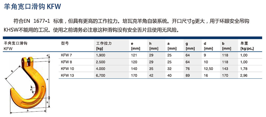 培瓦克Pewag羊角寬口滑鉤KFW